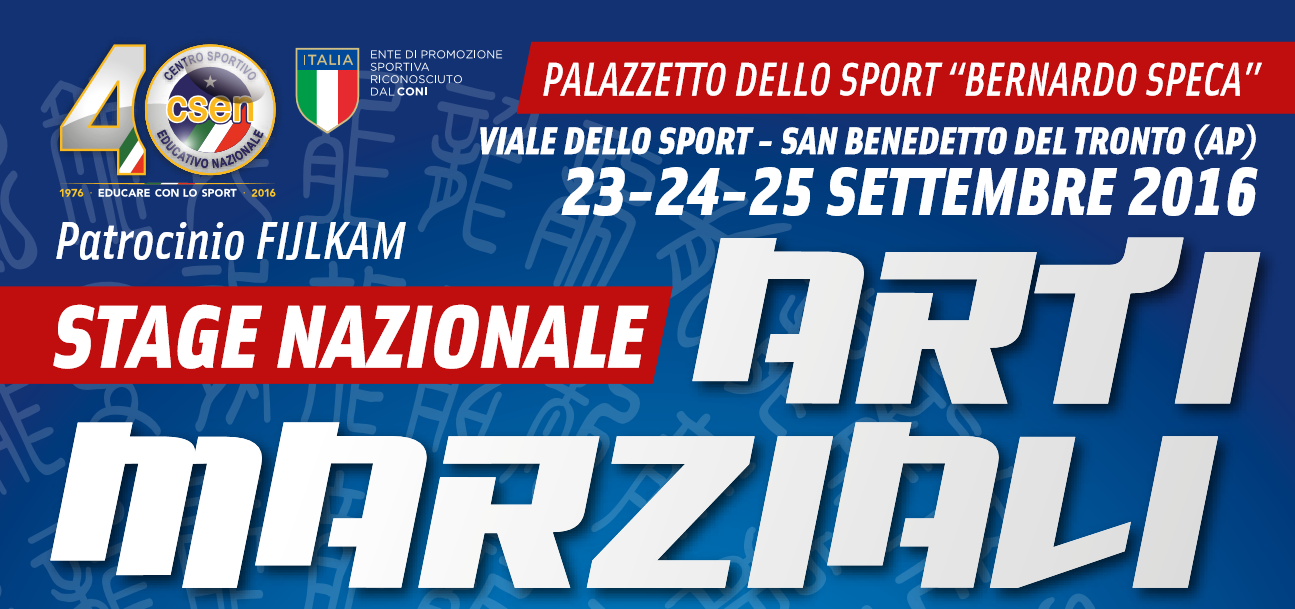 Il 23, 24 e 25 Settembre si riuniscono a San Benedetto del Tronto, Palazzetto dello Sport Bernardo Speca, le arti marziali CSEN.